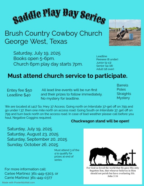 "God" things, happened. Land was given as a permanent home for Brush Country Cowboy Church.